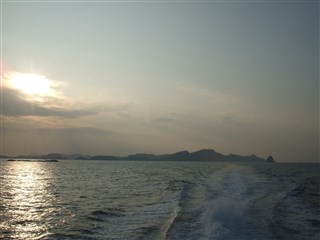 ![]() | ![]() ![]() | 座間味からの帰りは高速船にしました。夕日を背にして、渡嘉敷島の北側を通って泊港に戻りました。 | |