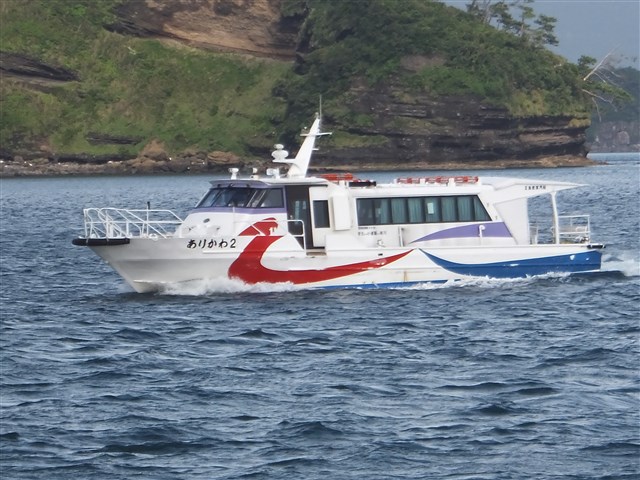 ![]() | ![]() ![]() | 小値賀島でも2時間ほど滞在して、「ありかわ2」で有川へ。この便は完全予約制なので、前日電話で予約しておきました。小値賀から3名乗り、乗客は計4人でした。 | |