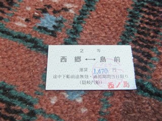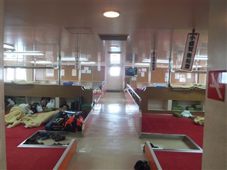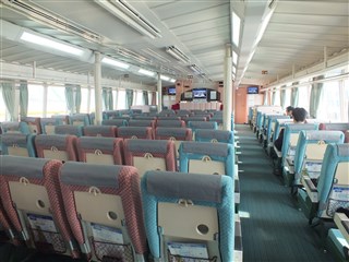 ![]() | ![]() ![]() | 町営バスで浦郷にある西ノ島町役場を往復した後、17:15発の「フェリーしらしま」で西郷港へ。暗くなったので、団体客で混雑した二等席で横になって過ごしました。 | |