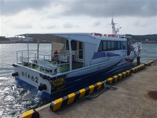 ![]() | ![]() ![]() | 中島に1時間ほど滞在して、帰路は高速船で戻ります。この便も野忽島と睦月島に寄って35分で到着。 | |