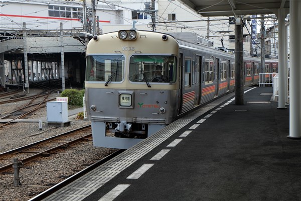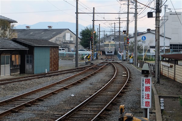 | 松山市駅方面から電車が近付いてきます。 | 間もなく終点です。 | |