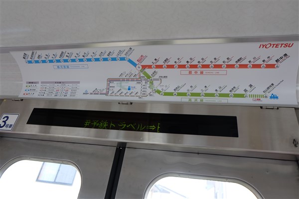 | ドア上の路線図 | 横河原駅に到着しました。 | |
