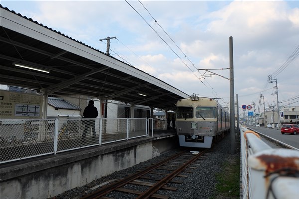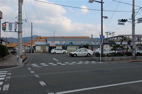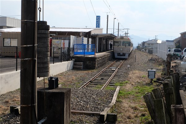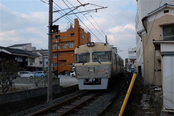 | 住宅の間を進みます。 | 郡中港駅に進入 | |