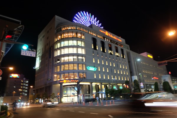 | フリー切符の乗れる松山市駅上の観覧車から1枚 | 夜の松山市駅 | |