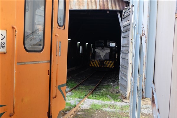 | 現役のディーゼル車もいます。 | | 車庫の奥にディーゼル機関車が居ました。 |
