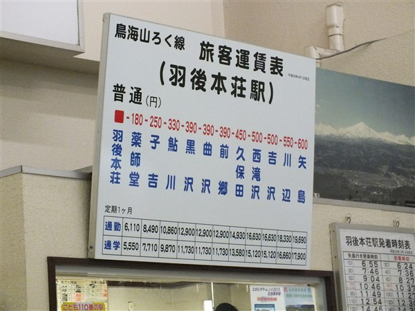 | 料金案内 | 左がJRの改札口、右が由利高原鉄道の改札口 | |