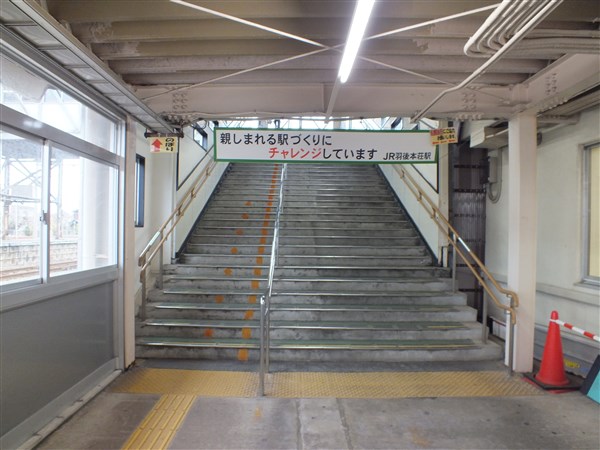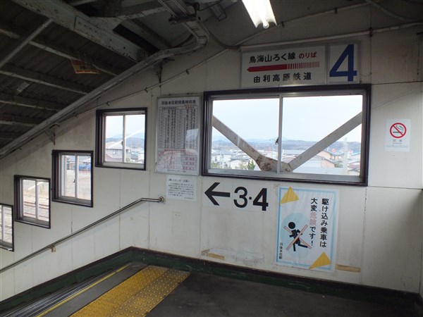 | 改札を越えるとJRと共有の跨線橋を渡ります。 | 由利高原鉄道は4番線 | |