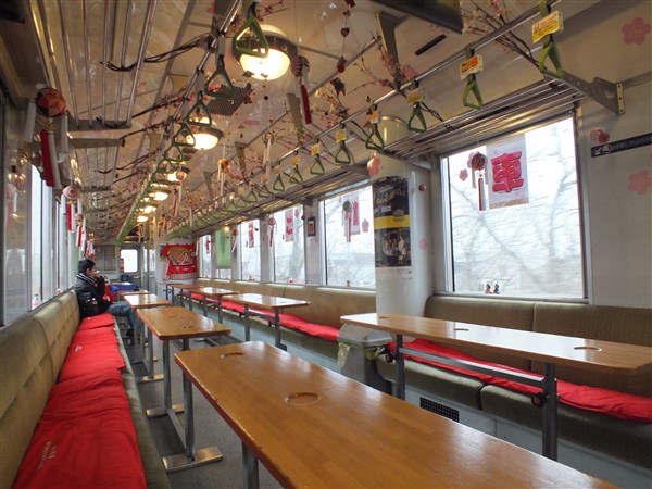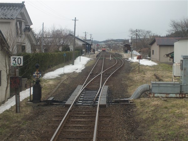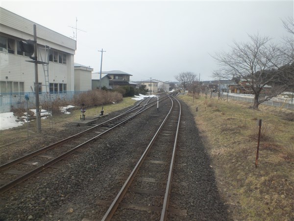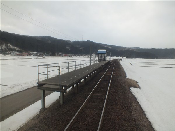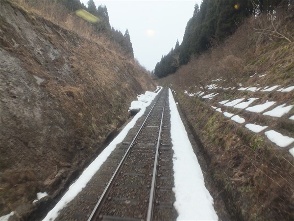 | JR線との接続が悪いからか、他の乗客は一人のみ | 雪よけシェードに沿って1直線の鉄路 | |