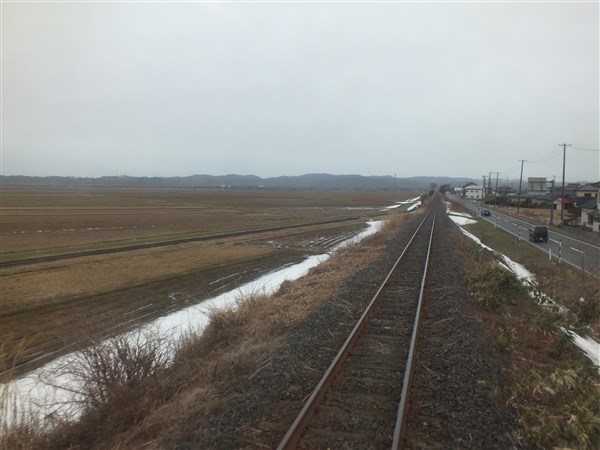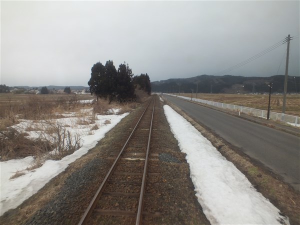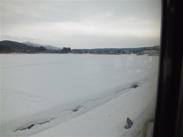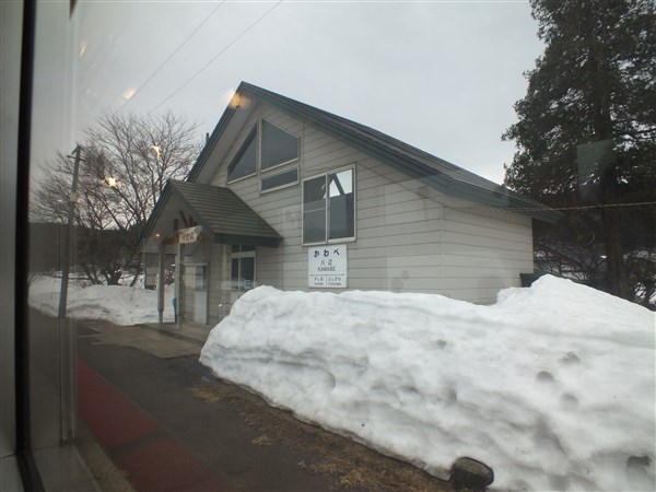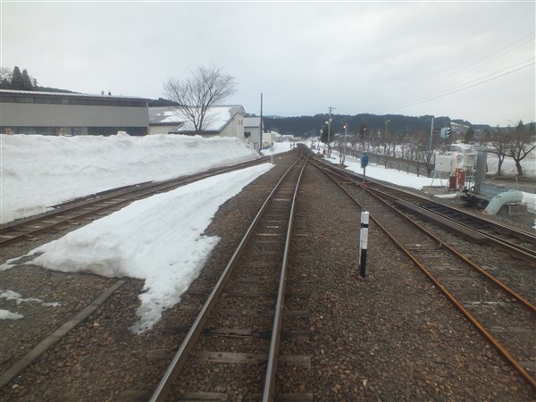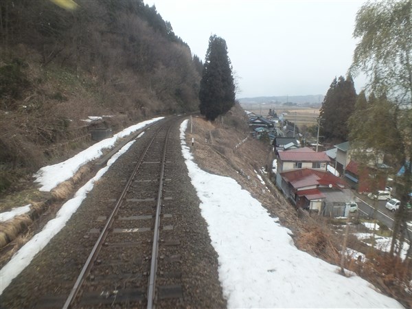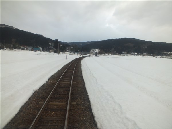 | 16時11分、前郷駅を発車 | 少しずつ雪が増えてきました。 | |