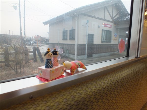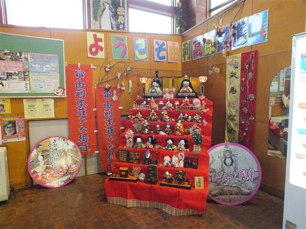 | 『おひなっこ列車』の案内 | 矢島駅の切符売り場 | |
