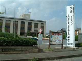 | 77 | 有家町 | ![]() | 平成14(2002)年9月 | 昭和55年竣工 南島原市有家支所(2014.8) ![]() <町の変遷> ・明治22(1889)年4月1日 東有家村が発足 ・昭和2(1927)年1月1日 町制施行/改称し、有家町となる ・昭和31(1956)年9月30日 堂崎村と合併し、新制有家町が成立 ・平成18(2006)年3月31日 加津佐町、口之津町、南有馬町、 北有馬町、西有家町、布津町、深江町と合併して、南島原市が誕生 | |
